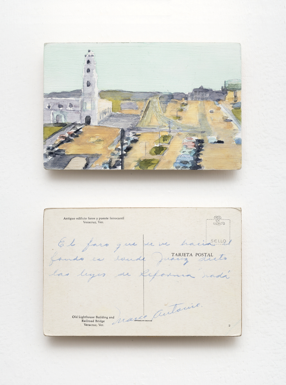 El espacio visitado, que por su naturaleza es transitorio, sirve como contenedor de memoria y vehículo para compartir un mensaje que desea permanecer y ser recordado. Areán se propuso apropiarse de ese recuerdo ajeno a través del objeto de la postal y re-interpretarlo, imaginarlo y reinventarlo a través de la pintura. El resultado final fueron pequeñas acuarelas que se muestran junto con el texto original de la postal.